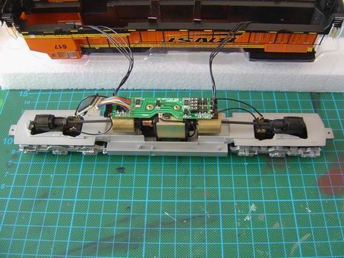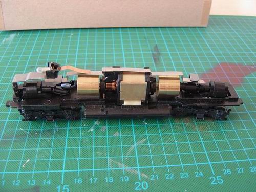 bisher habe ich jeden Umbau mit DCC-Decodern problemlos hingekriegt, egal ob H0 Auto oder Lok. Bei dem Athearn-Zug, den ich letztes Jahr aus Kanada mitgebracht habe, hat die Lok an einem Motorpol über das Gehäuse einen nicht isolierbaren Masseschluß: ein Motoranschluß ist mit 4 Schrauben, die gleichzeitig der Befestigung dienen, mit dem Gehäuse verbunden und das wiederum über die beiden Drehgestelle mit einem Schienenstrang.