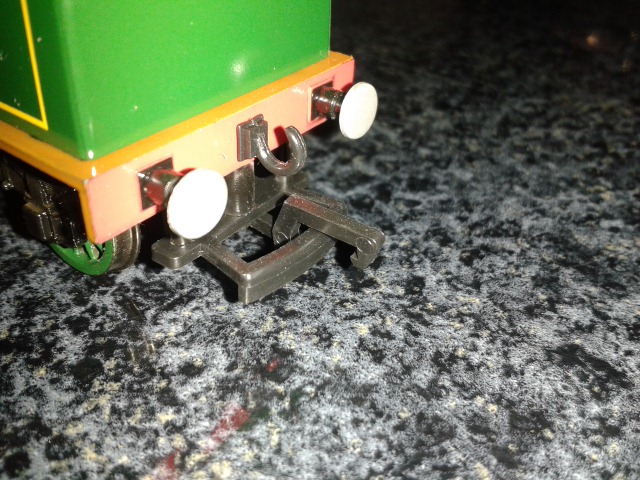 Lok und Tender sind wie man vielleicht oben auf den Bildern sieht wie auch einige Märklin Loks durch einen Stift verbunden, der einfach durch eine bewegliche Öse geschoben wird.