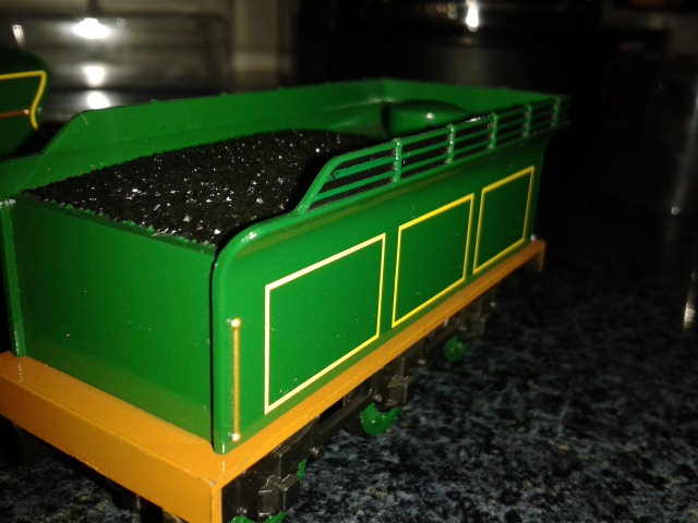 Läuft ganz gut. Zwar ohne Haftreifen und nicht gerade eine Rennmaschine aber mein Sohn ist glücklich. Das einzige was gar nicht funktioniert ist das Rückwärtsfahren über eine Weiche. Entgleist jedes Mal. Liegt wohl an den Rädern.