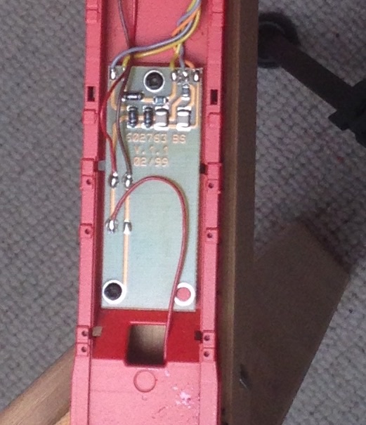 * mit dem Dremel die beiden Leitungen zwischen Stromabnahmen und Beleuchtung unterbrochen