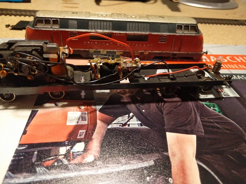 Auch wir haben uns eine "alte" V200 zum eigenen digitalisieren herrausgesucht und wollen da auch die Lämpchen gegen rot/weiße Led`s tauschen, auch soll sie ein Sound Modul bekommen. Wir wollen für diese Lok einen eigenen Dekoder und ein eigenes Sound-Modul bauen um des Spaßes und der Technik willen. Leider gingen uns die schon vorhandenen Quell-Codes verlohren