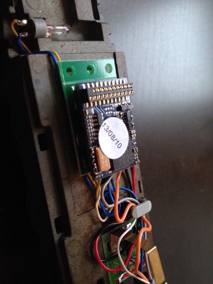 im Kreis schicken. Leider hat sie keinen Mucks gemacht. Daher: schnell aufgeschraubt und inspiziert. Dabei hat mich der Decoder etwas verwundert. Ist der Original?? Und sollte der auch analog gesteuert werden können oder liegt hier des Rätsels Lösung?