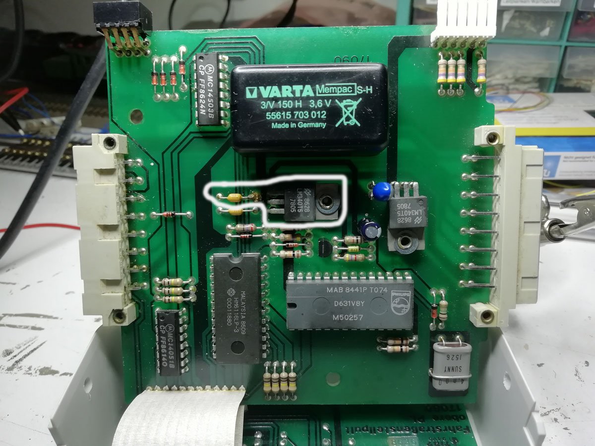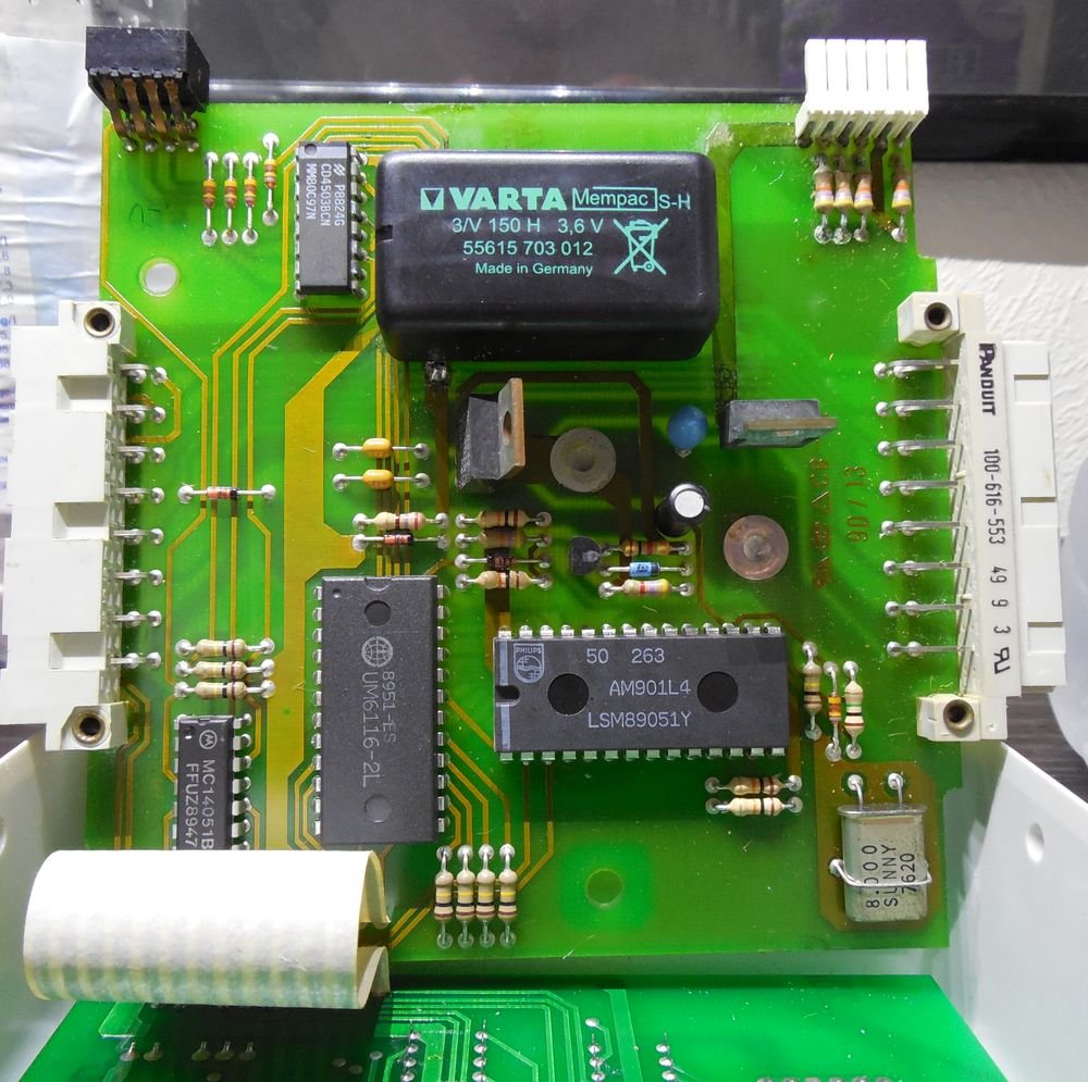 Jetzt doch noch mal ein letzter Versuch. Das "Gedächtnis" vom Memory scheint zu funktionieren. Alle Teststraßen die ich eingegeben habe merkt er sich. Aber..... das Phänomen ist folgendes: Wenn das Teil länger als 1 - 2 Stunden aus war funktioniert nach dem Einschalten nichts. Irgendwelche Lämpchen leuchten. extern, off, end und clear immer gleichzeitig und dann noch irgendwelche Fahrstraßen Lampen. Aber immer unterschiedliche. Nach 2 - 3 Stunden funktioniert das Teil dann einwandfrei. Die programmierten Fahrstraßen sind da, man kann neue programmieren oder löschen und das Memory merkt sich alles. Aber nach dem Ausschalten geht am nächsten Tag das Spiel von vorne los. Was kann das sein. Hier ein Bild von der Platine. Was kann da noch defekt sein. Der neue Akku schein ja zu funktionieren. Das Memory merkt sich ja alles.