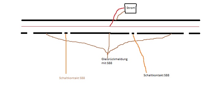 rein theoretisch ist die dargestellte Schaltung durchaus machbar. Allerdings solltest Du bedenken dass jede Achse bei der Überfahrt der Kontaktabschnitte eine Meldung an das S88 auslöst.