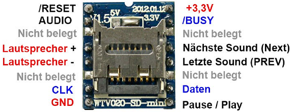Jetzt würde ich gerne auch einen preiswerten Sounddecoder in diesen Ablauf einbinden - also ausgelöst durch Befahren des Kontaktgleises. Es reicht vollkommen aus wenn dieser Decoder eine einzelne Sounddatei von ca. 20sec wiedergeben kann. Nur würde ich gerne einen eigenen Sound abspielen können. Bis dato hab ich nur Decoder gefunden welche für diesen Zweck viel mehr können als nötig.