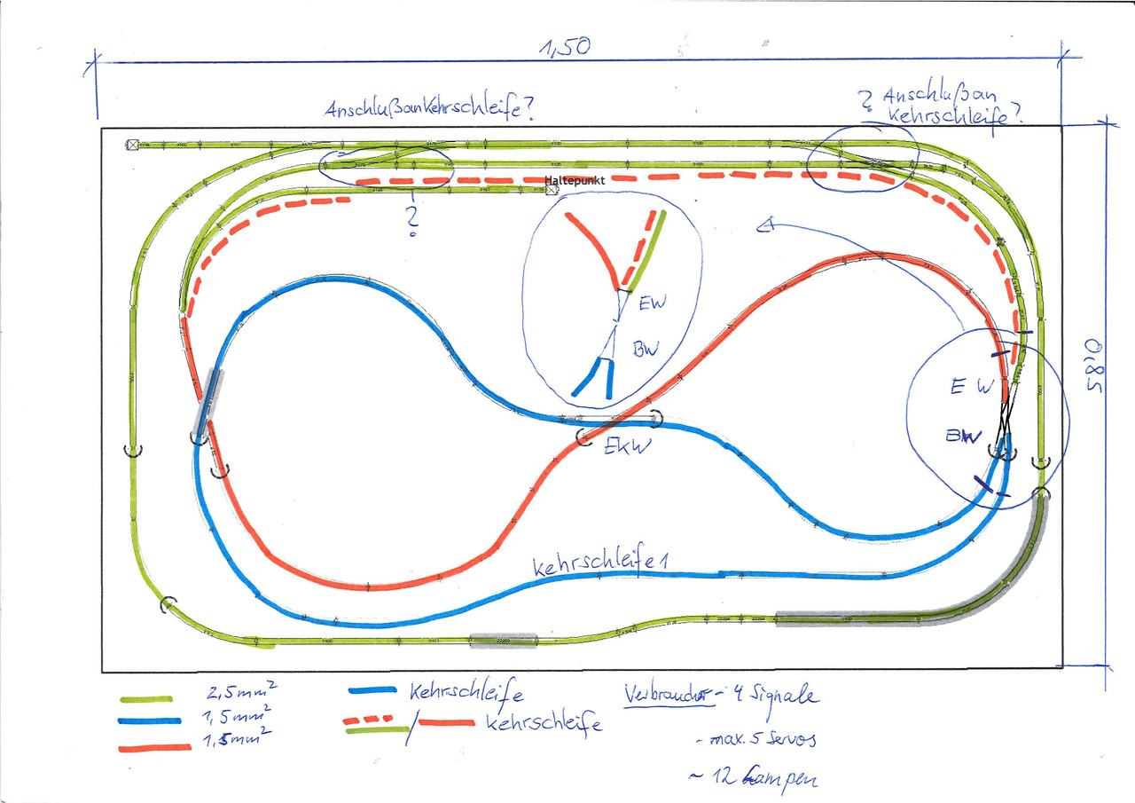 4) Verkabele ich meine beiden Kehrschleifen jede für sich? Hier wäre sonst eine Skizze was ganz, ganz Tolles. An der Geometrie möchte ich aber nichts ändern.