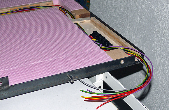 die gesamte verkabelung der anlage befindet sich auf der oberseite der platten, zwischen den etagen, von hinten gut zugänglich.