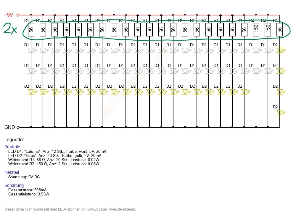 ich plane zur Zeit ein kleines Diorama im Maßstab 1:500 und möchte dafür Haus- und Straßenbeleuchtung integrieren. Dafür besitze ich bereits passende Straßenlaternen (3V, 20 mA) und LEDs (ebenfalls 3V, 20 mA). Da ich bisher noch nie mehrere LEDs an einen Schaltplan angeschlossen habe, erbitte ich den Rat von ein paar erfahreneren Modellbauern.