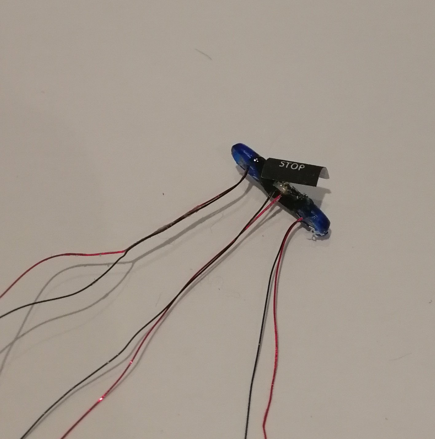 bei einem Polizeiauto (1:87) hab ich den Blaulichtbalken so modifiziert, dass dort ein rotes "Stop" in der Mitte leuchtet (siehe Foto). Zur Befestigung der SMD LED (0603, rot) habe ich einen großen Tropfen UHU hart verwendet. Es hält sehr gut, ich bin mir aber unsicher, da der Klebstoff leicht entzündlich ist und die LED so von Klebstoff umschlossen ist, dass Wärme nicht gut entweichen kann. Könnte das zu Problemen (Überhitzung/Brandgefahr) führen? Die LED wird mit ca. 5 mA betrieben.