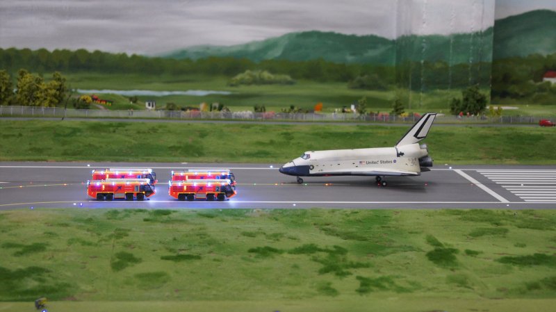 Die Notlandung des Space-Shuttle mit Feuerwehreinsatz kannte ich schon, man muß nur Glück haben, sie auch mitzubekommen (siehe Foto).