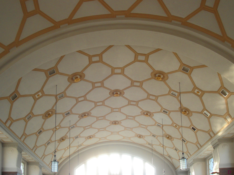 In der Eingangshalle gibt es schon mal einen ordentlichen Deckenschmuck: