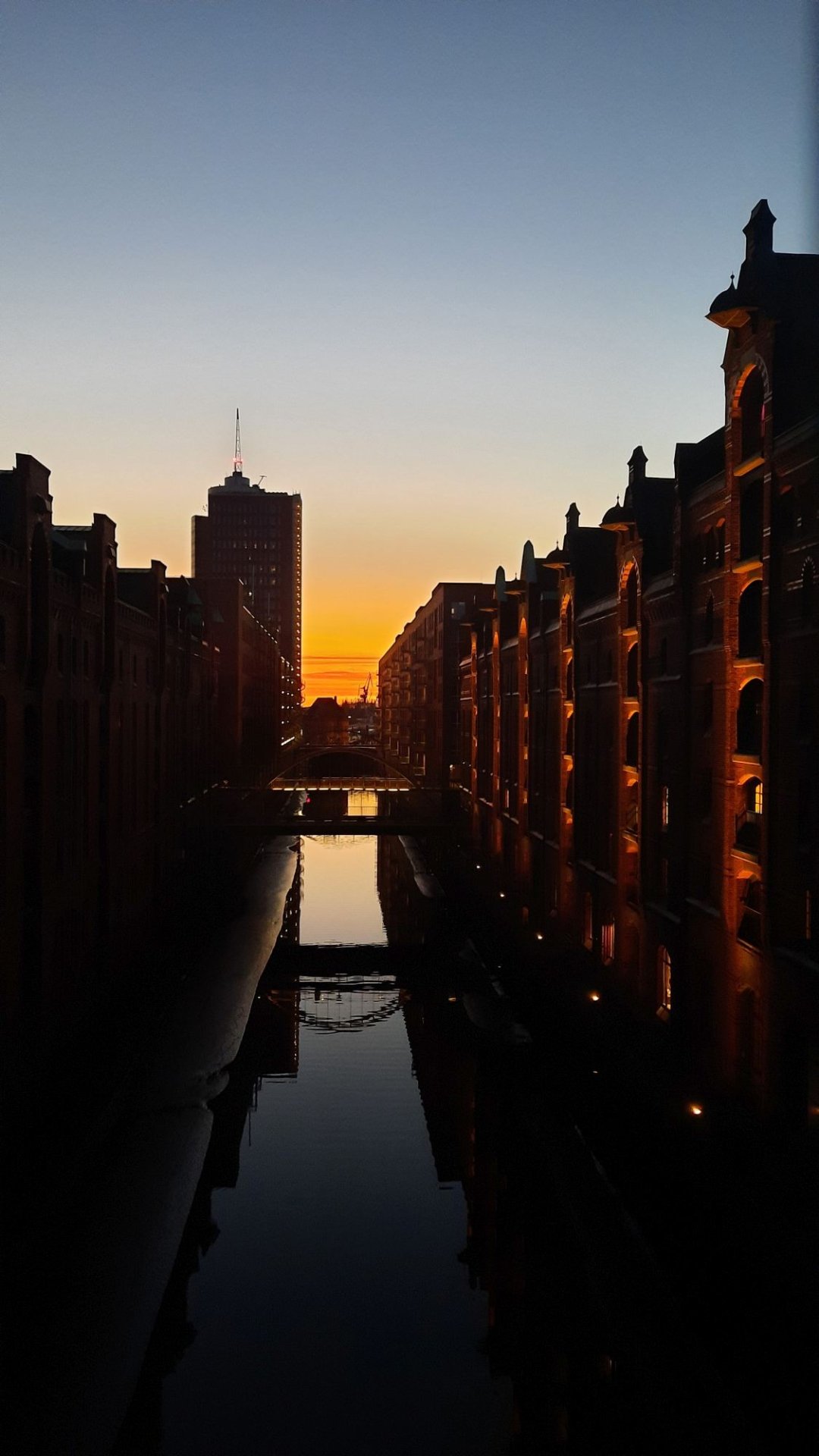 Mal kein Schmuddelwetter in der Speicherstadt - dafür hübsche Stimmung über dem Hafen.