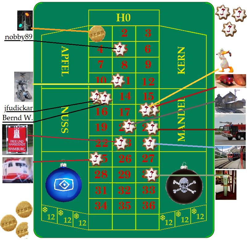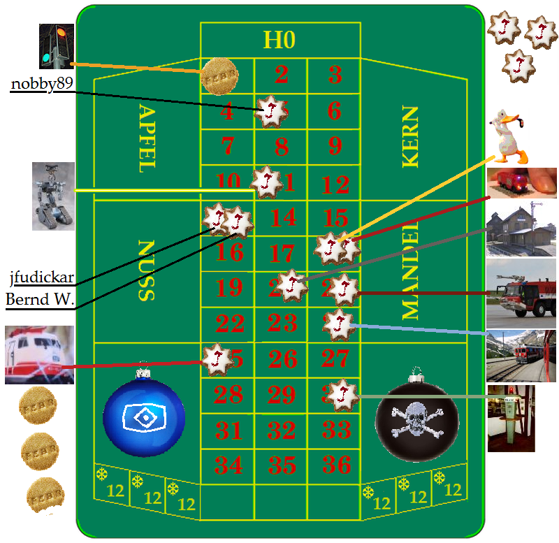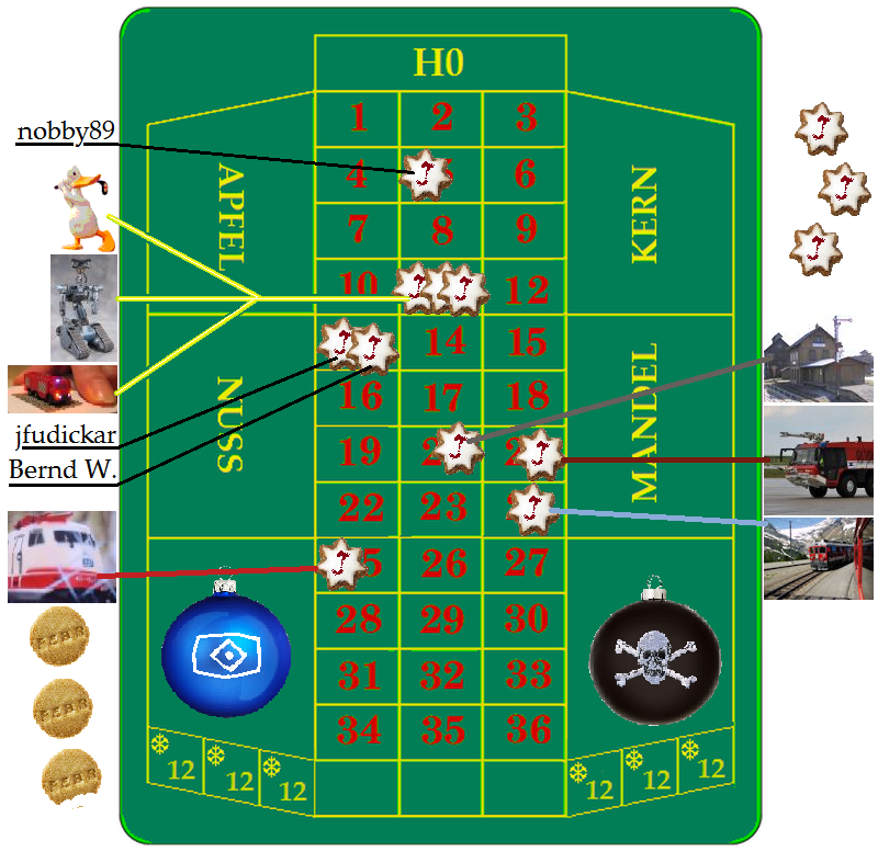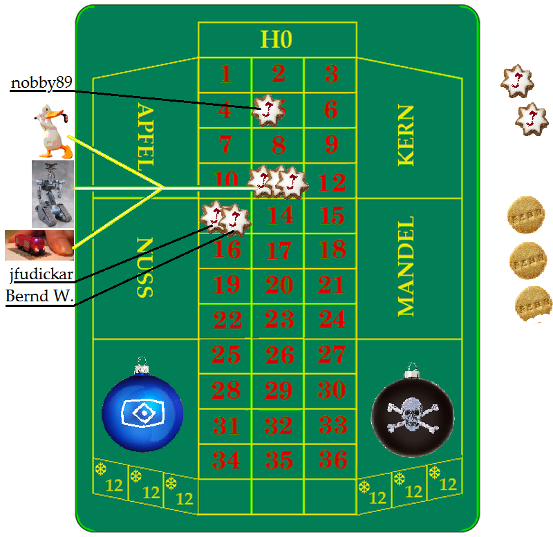 9.660.286 wurde ein weiterer Zimtstern platziert: Und wenn ich einen erwische, der die Kekse, äh, Jetons aufißt, dann soll der sich aber mal warm anziehen...