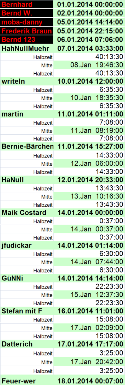 Das größte Zeitfenster rund 55 Std. und wenn es bei der momentanen Clickrate bleibt könnten die 14 MC so um den 10. rum fallen, es sei denn, das "Großstadtrevier" bringt noch einen Schub.