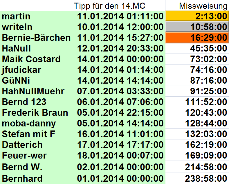 Mit einer Ganzknappdanebenzeit von nur 2:13 Stunden.Damit schlägt er sogar den legendären Tipp von Datterich zum 04.11.2012, der zwar mit einer Missweisung von nur 2:44h damals den Sieg brachte, aber doch um eine halbe Stunde weniger präzise war. Welten prallen aufeinander.