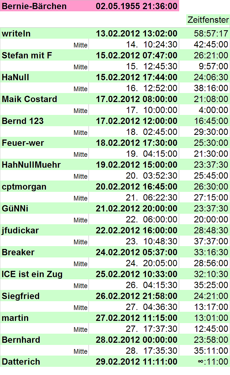 Moin, Stefan,Stefan mit F hat geschrieben:[...]vergessen, das Zeitfenster von Bernie-Bärchen und writeln in Stunden, Minuten und Sekunden anzugeben.[...]
