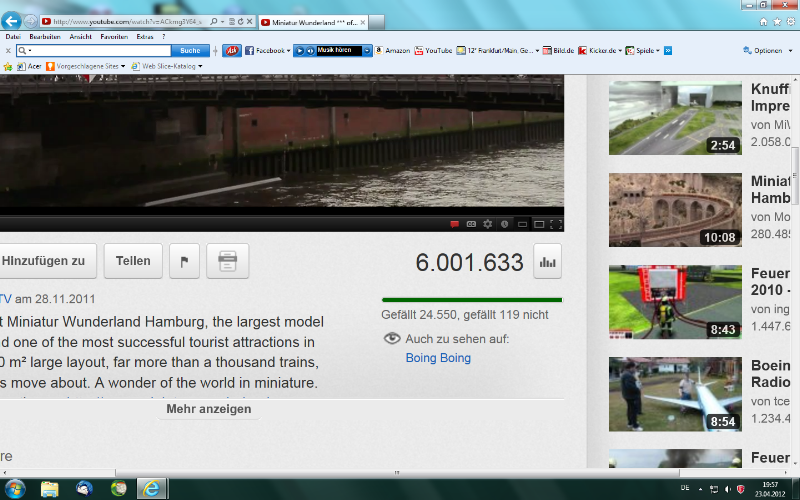 Mit einer Abweichung von gerade mal 24:59:50h hat er den Zeitpunkt des 6-millionsten Clicks ziemlich gut getroffen. Gratuliere, und Wohl bekomms.