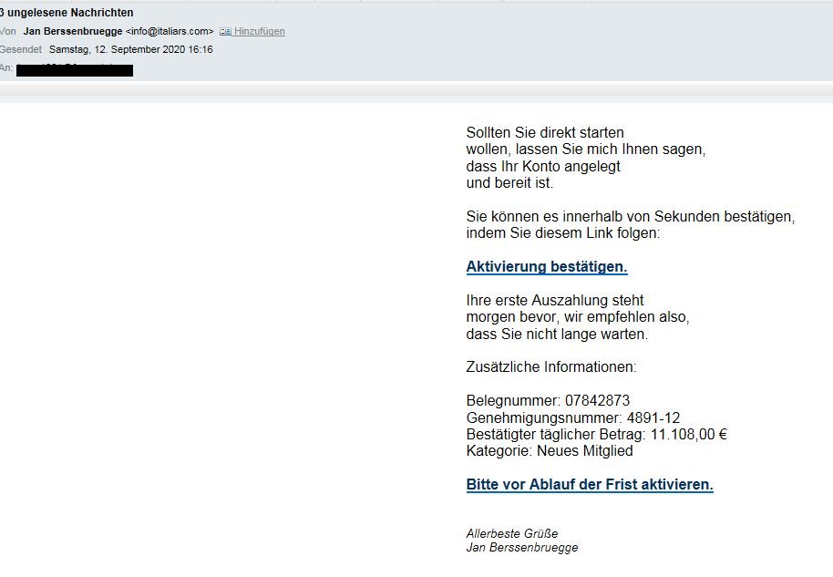 der Trollo hatte die gleiche Masche bei mir versucht. Beim lesen der Mail war ich böse am lachen da wollte meine Frau wissen weshalb. Zu ihrer Erheiterung drehte ich das Schleppi so, dass sie es lesen konnte.
