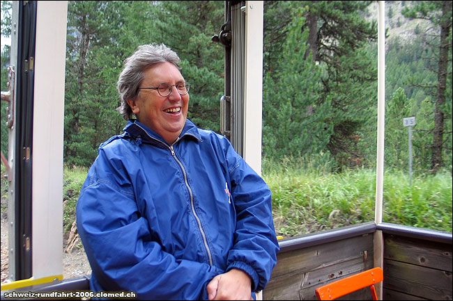 Achim konnte das Leben immer in vollen Zügen genießen - wie hier im offenen Aussichtswagen der Berninabahn im Sommer 2006