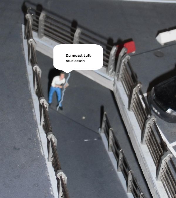 das mit dem Luft rauslassen ist klasse! Ich hab auch noch einen Ein-Bild-Comic:Am Einsparen von Text arbeite ich noch.
