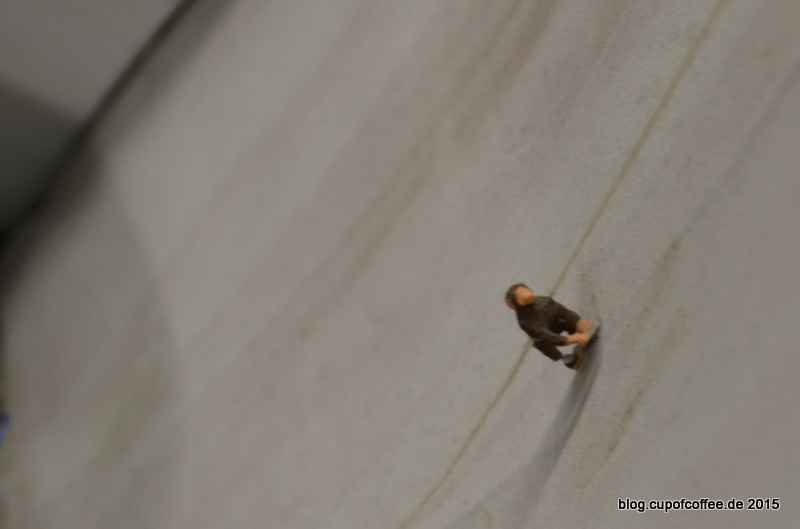 der klettert an der Außenwand der Staumauer in Graubünden (Schweiz). Auf der anderen Seite befindet sich die versunkene Kirche. Wer ein Bild sucht, sollte Seite 48 im 6. Eisenbahn-Kurier-Wunderlandspecial (2. Quartal 2008) aufschlagen.