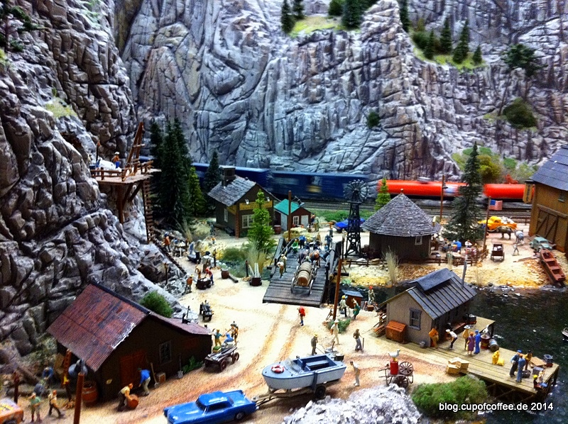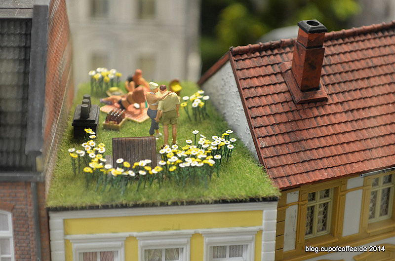 Weiter geht es aber mit diesen sehr geschäftigen Preiserlein:Ich vermute, es handelt sich um eine echte 'Gaston', da die Brücke aus Holz statt aus Plastiggglumbb gefertigt ist und die einzelnen Bretter auf die präzise Bearbeitung mit einer Proxxon-Kreissäge schließen lassen.