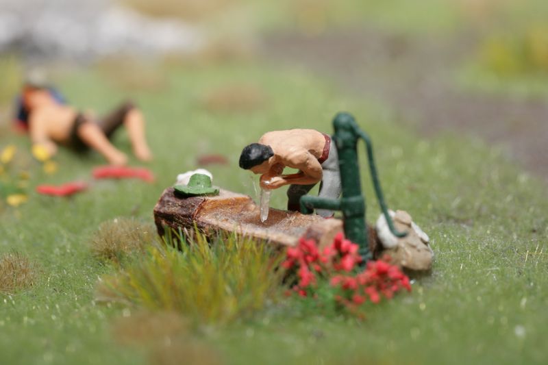 Genau, mir kamen die Trolleys und die Koffer die ganze Zeit irgendwie bekannt vor und es war auch klar, dass Du da in ein Gebäude hinein fotografiert hast, das vermutlich dicht an der Anlagenkante stehen musste. Auch die Uniform der Dame am Schalter passt nicht zur Eisenbahn.