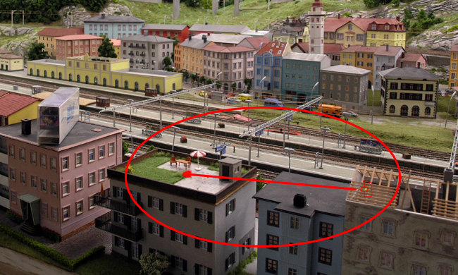 Die Baustelle war, als ich da war, immer noch unfertig. Bei dem offenen Dach kann man nur hoffen, dass unter dem Haus kein Schattenbahnhof liegt, in den es durchregnen kann.