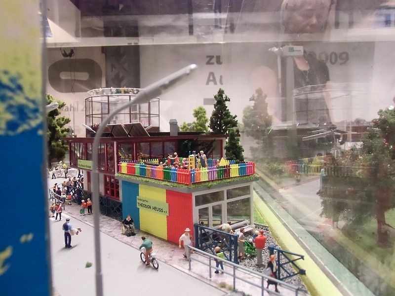 die Grünen haben in ihrem Diorama aus dem Jahr 2013 Schülerlotsen und rote Fahrradwege eingesetzt.
