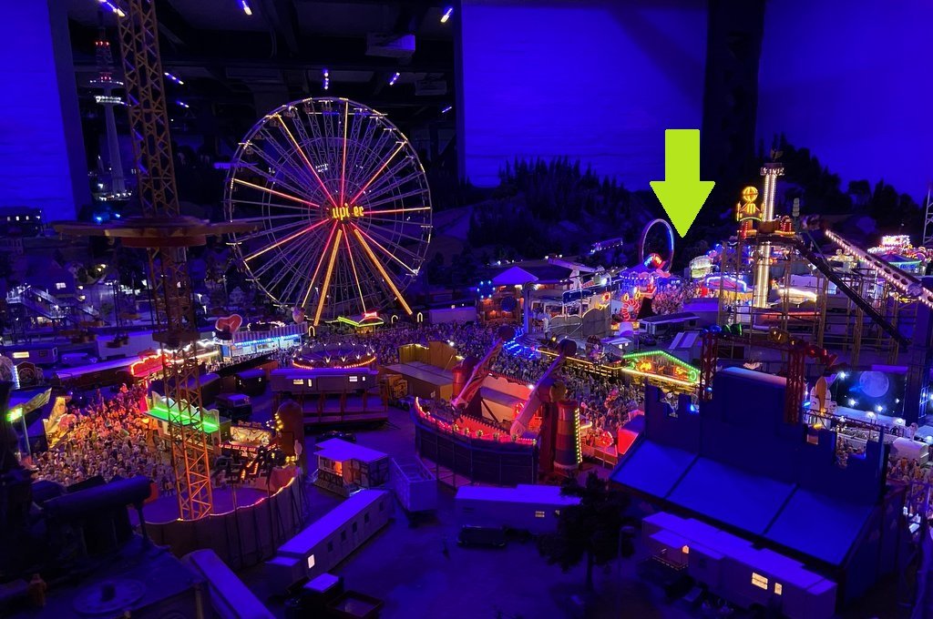 Ich schätze der ungefähre Standort liegt zwischen Loopingbahn und Wand zum Hamburg Abschnitt.