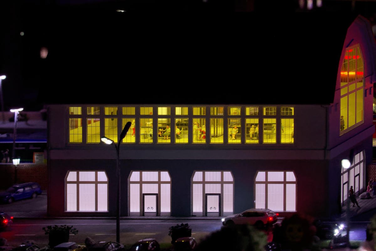 Cool ist mal wieder die Inneneinrichtung, die wohl den allerwenigsten Besuchern auffallen wird und die nachts besonders gut zur Geltung kommt.