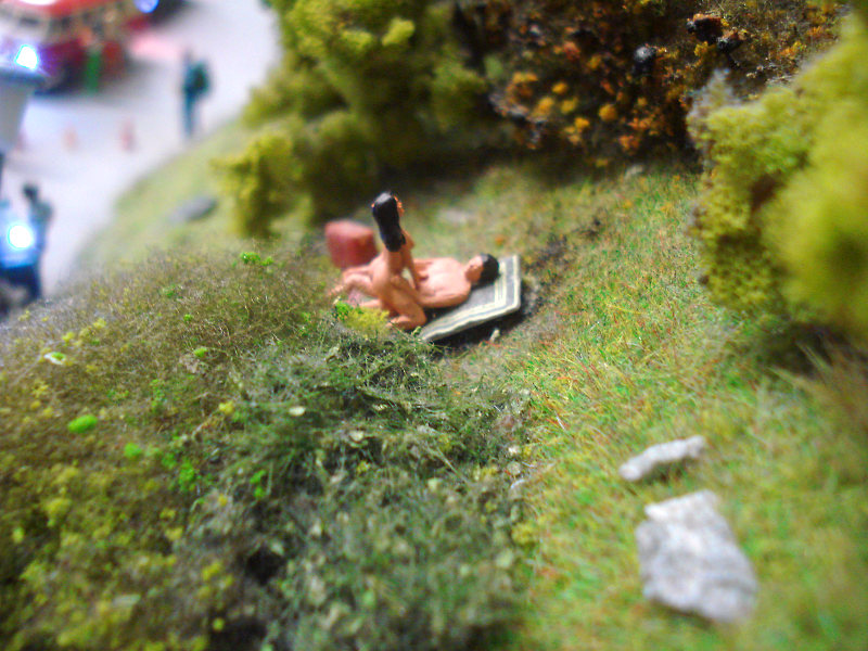 Übrigens, mir war schnell klar, wo die beiden sich aufhalten, daher die Erwähnung von DJBobo. Allerdings wurde dieser Bereich offensichtlich umgestaltet, denn auf meinem Foto von Januar 2013 sieht das noch wie folgt aus: Anderes Pärchen, andersfarbige Unterlage, andere Stellung und frischeres Gras. Vielleicht hat die Schweizer Sittenpolizei zugeschlagen?