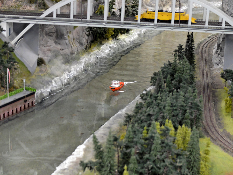 ... dass man nix sieht. Auf dem Wasser unter der Brücke (mit der Lok) ist genau nichts zu sehen.