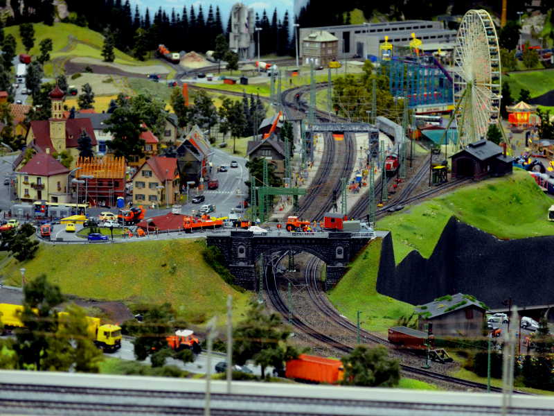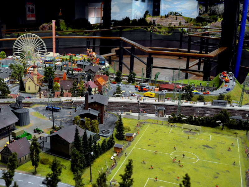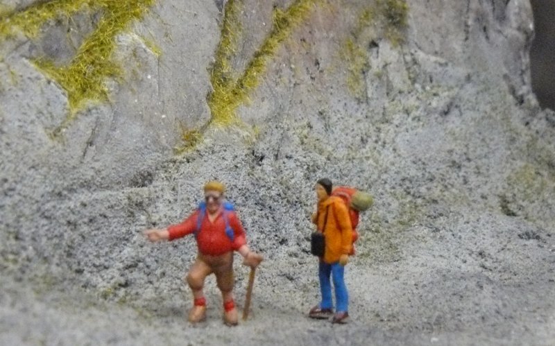 Die beiden wandern am Fjord in Norwegen entlang, am hinteren Rand der Anlage, sind aber von vorne mit Blick über die Schleuse in der Ferne zu erkennen.