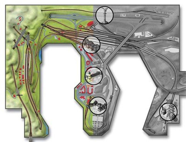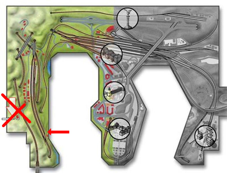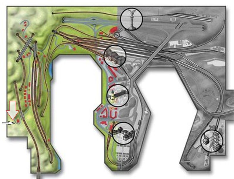 die Indianer sind gegenüber, dass solltest Du doch wissen. Aber manchmal schiessen die die Pfeile ganz schön weit (daneben). Mein Foto ist von der vorderen Anlagenkante gemacht, Bernds Pfeil kommt von hinten. Auf der Landkarte ist in unmittelbare Nähe eine Bahnlinie vor dem Pfeil, auf dem Foto nicht.