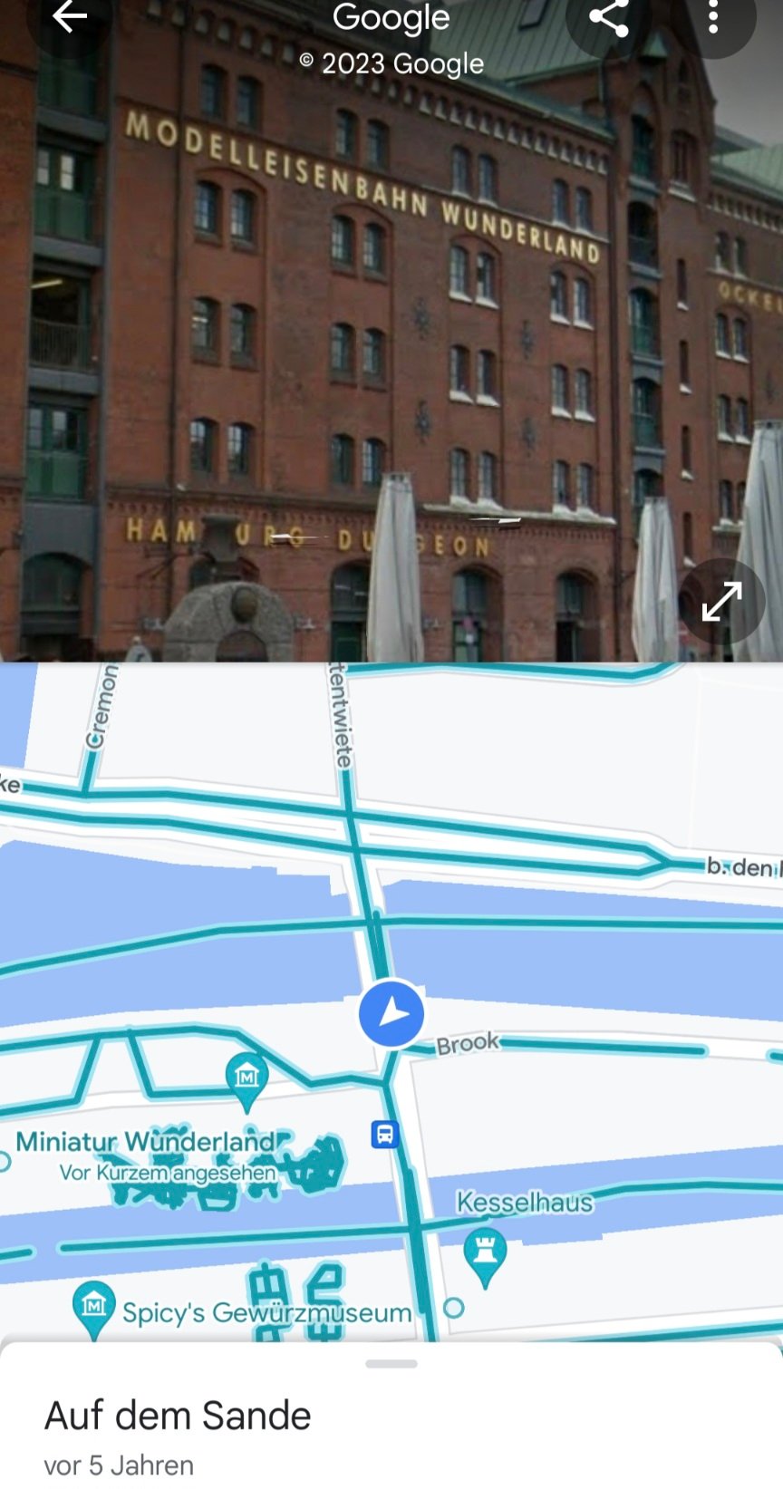 Ja, die Foto-Autos fahren zur Zeit wieder durch Deutschland. Die obigen Fotos stammen bereits aus einer Aktion "September 2017" ("Modelleisenbahn Wunderland" Schriftzug und von Standpunkt Sandbrücke aus ist noch keine neue Fleetbrücke zu sehen) und "Oktober 2022" (neue Brücke ist da). Die waren also seit einiger Zeit wieder häufiger und fleißig in Deutschland unterwegs.