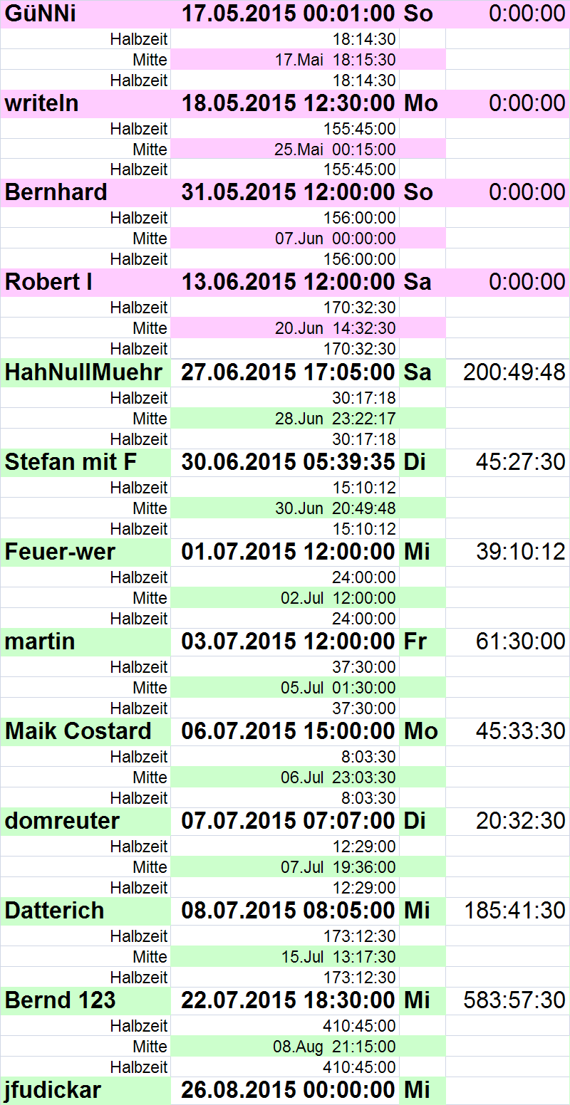 wird ja auch Zeit, das der Herr der Tafeln wieder mal ganz oben steht.HahNullMuehr hat geschrieben:Die nächsten 8 Tage tickt die Uhr für mich.