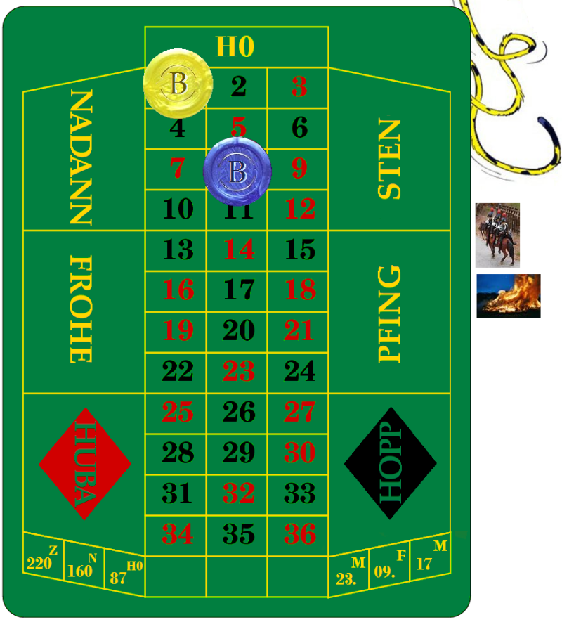 der Jeton mit dem "B" für Bernd 123 gesetzt ist.
