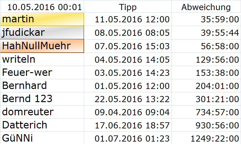 Schreiten wir nun (gemächlich) zur Siegerehrung: