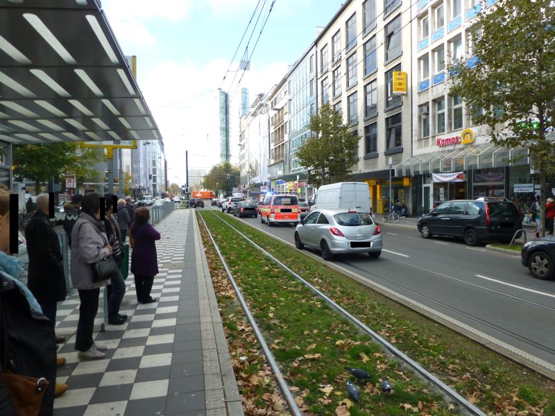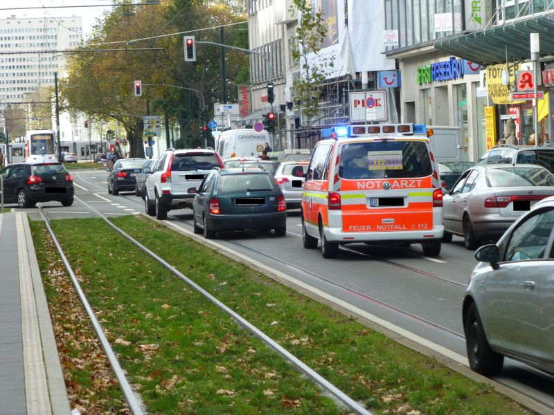 vom 2.11.2012 um 13:22 stammt diese Aufnahme. Der NAW kam mit Sonderrechten angefahren. Die rot zeigende Ampel führte zu einer Überforderung der Lenkradbediener.