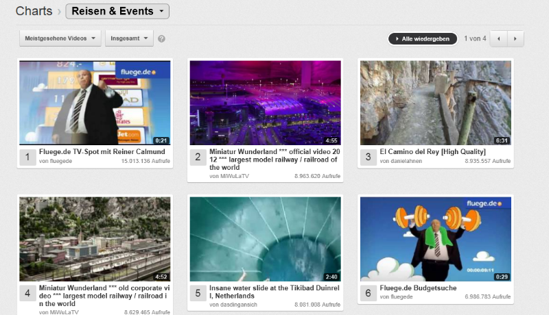 in den Reisen & Event Charts ist das Video mittlerweile auf Platz 2 vorgerückt. Bernd