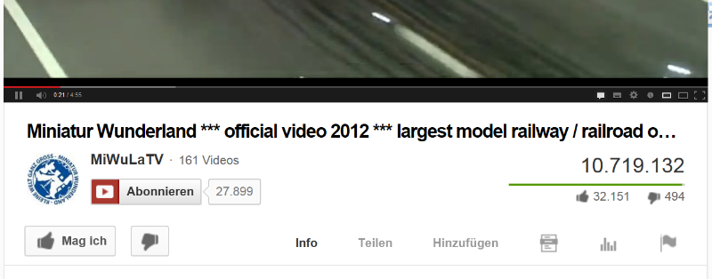 Wir halten die Youtube-Views des alten Videos (english) fest