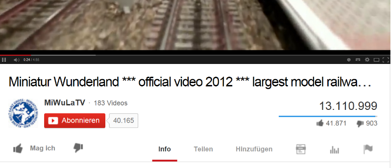 Wir halten die Youtube-Views des alten Videos (english) fest
