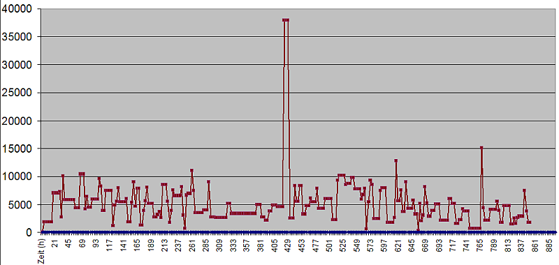 Unkalkulierbar bleiben aber solche Ausreißer wie z. B. am 01.02., wo innerhalb 3x3 Stunden ein Anstieg von 113.000 Clicks auftrat, oder am Mittwoch, dem 15., wo von den gesamt 27.863 alleine 15.053 zwischen 06:00h und 09:00 angezeigt wurden.