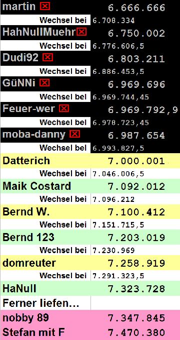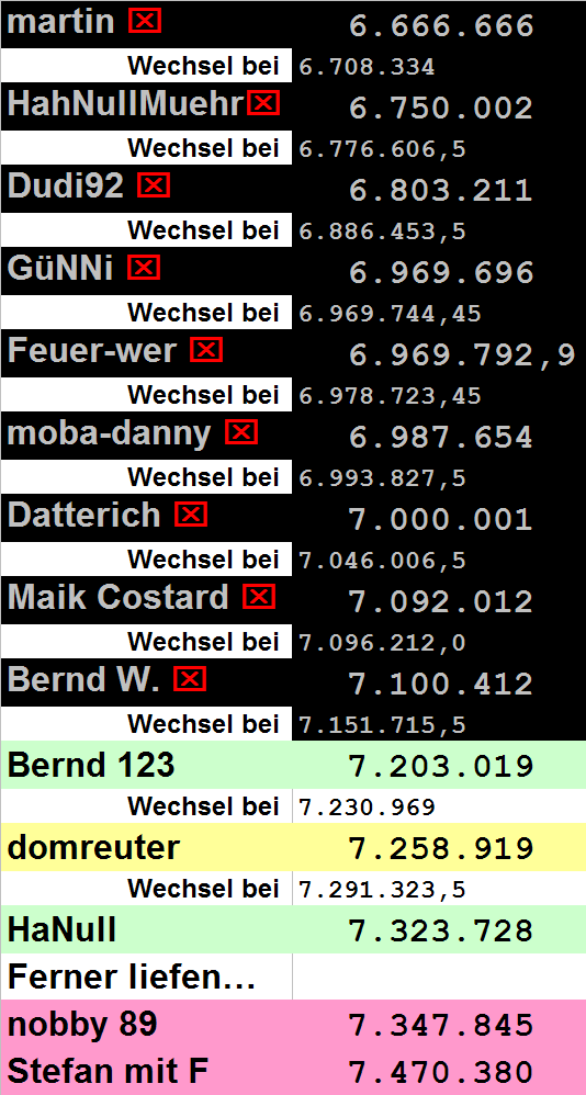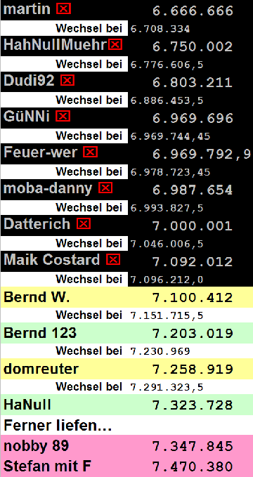 bei 7 047 348HahNullMuehr hat geschrieben: Datterich ist ja noch im Rennen...