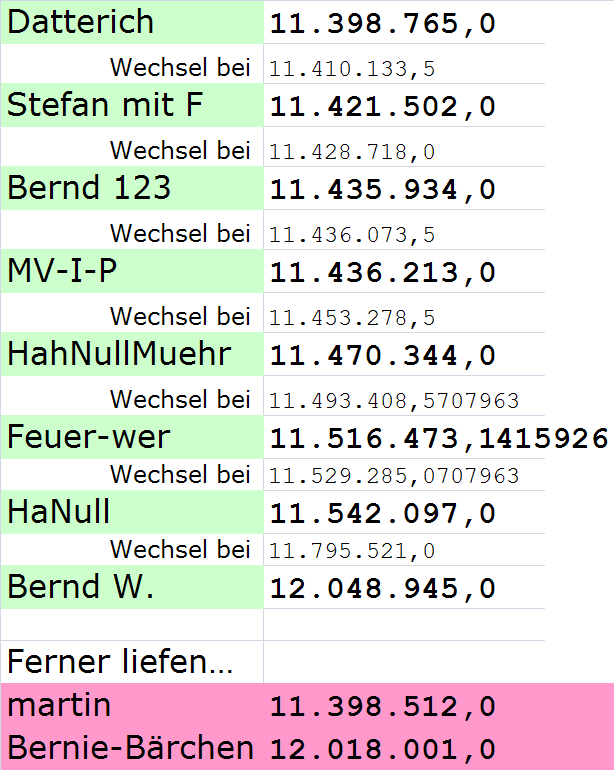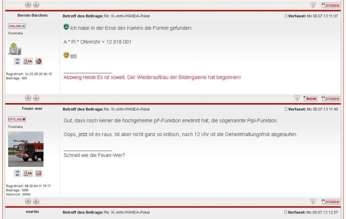 @ Datterich: Die eine Stunde Versatz zum Start des mfm brauche ich, um eventuell noch den Pokal gravieren zu können, sollte der Sieger nicht bereits vorher feststehen.