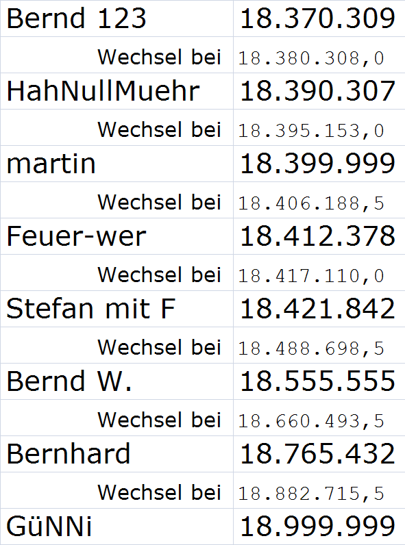 Na dan bin ich mal optimistisch: 18.399.999