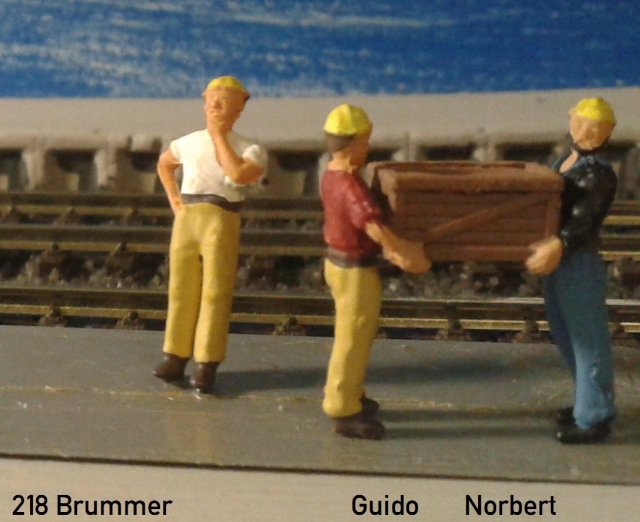 218_Brummer, Guido und Norbert hatten diese polystyrolen Avatare für das MFM-Geschnek eingereicht, und sind damit ja auf unserem Vitrinen-Bahnsteig zugegen.Genau diese Trüppchen habe ich mindestens zweimal beim Inspizieren der Anlagenhinterkante entdeckt.