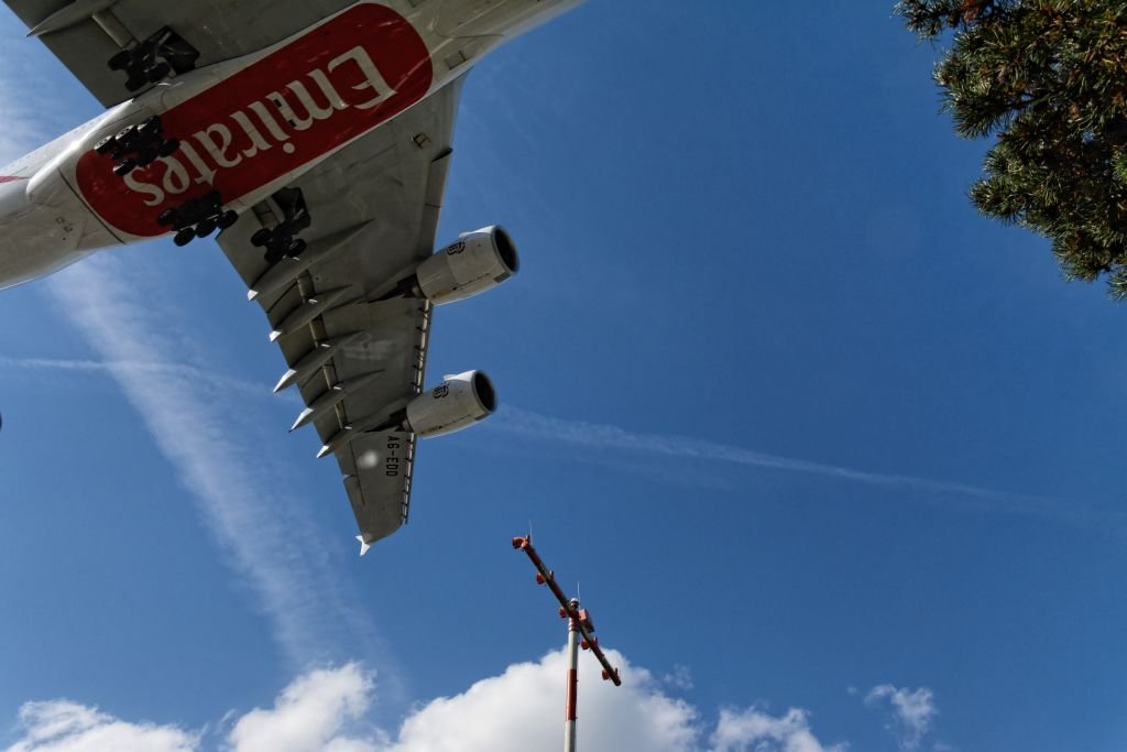 An Emirates A380 readies for takeoff, accelerating before soaring into the clouds. A crowd of onlookers gasps in delight as the superjumbo disappears out of sight...
