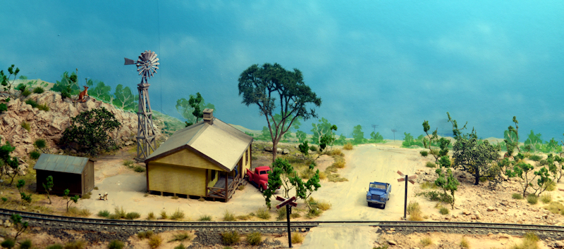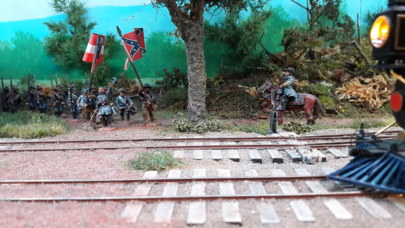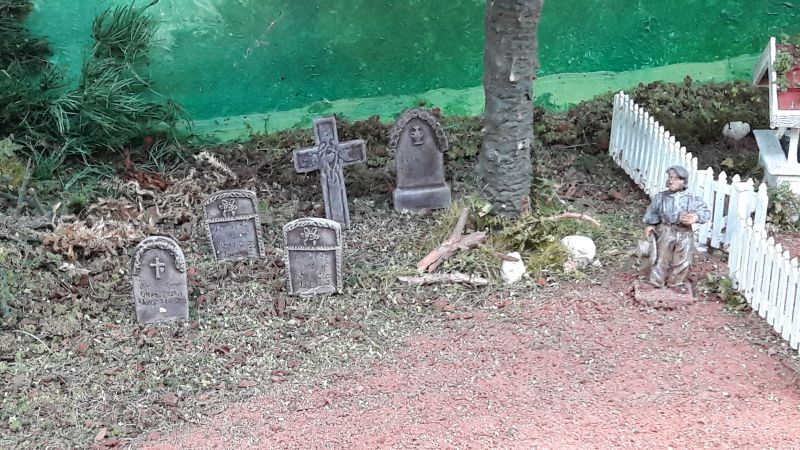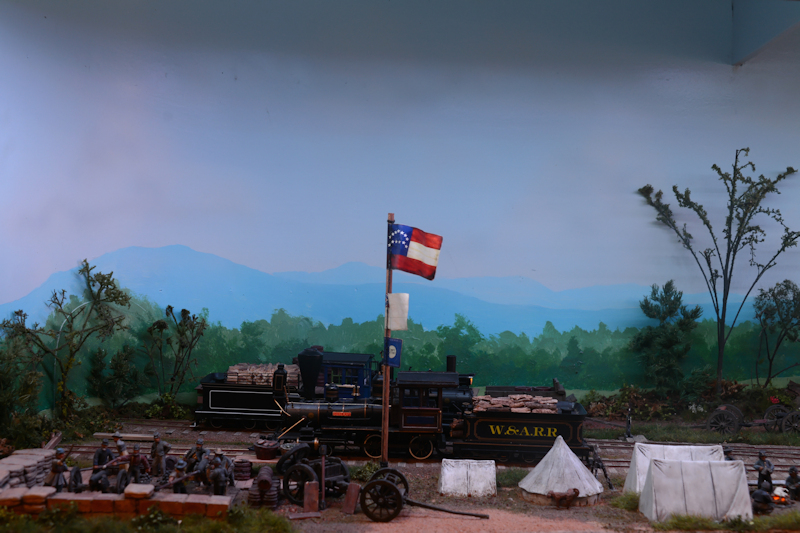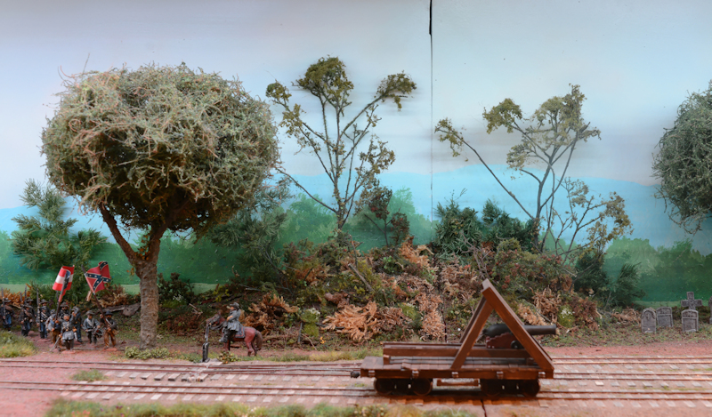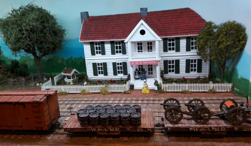 Die Szene aus dem US-Bürgerkrieg enthält noch ein Wohnhaus... ... mit angegliedertem Friedhof ... ... und natürlich passendes Rollamterial. Ich tippe auf Baugröße Spur 0.